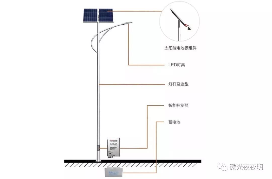 市場(chǎng)上并不是沒有好的產(chǎn)品,我們先來看下太陽能路燈的構(gòu)成。